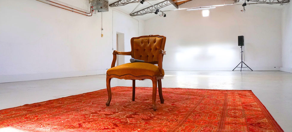 Maske, Styling, Ruhezone, Mini-Ausstellung, Interview-Setup, Pausenraum